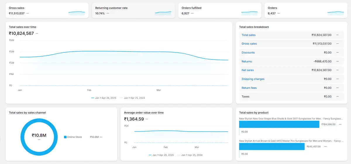 This fashion accessories brand started its journey with us just a few months ago. At the time of onboarding, the brand was doing around ₹25K–₹30K/day in revenue through organic traffic and unoptimized ads.